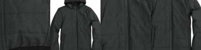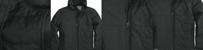 Shell: taffeta, 100% nylon; Lining: 65% polyester, 35% cotton; Water-resistant and repellant; Zipper front; Hand warmer pockets; Rib knit collar and back waist;