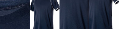 * 4.3 ounce 100% polyester heathered wicking knit top body, collar and sleeves * 3.3 ounce 100% polyester wicking knit solid body * Wicks moisture * Ladies' fit * Tag-free label * Self-fabric Johnny collar * Set-in sleeves * Contoured bottom