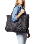 Sewn-in hook and loop closure straps contains the tote when rolled