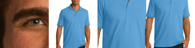 100% polyester pique, 4.1 oz./yd2/140 gsm; Moisture wicking, antimicrobial and UV protection performance; matching flat knit collar; heat seal label;