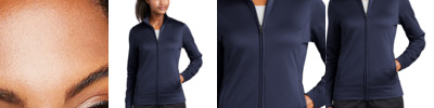 Snag-resistant and pill-resistant with a matte finish and contrast color detailing throughout, this double-knit jacket is right on trend with moisture-wicking performance.
