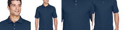 5.6 oz./yd²/190 gsm, 65% polyester, 35% cotton piqué with wrinkle-resistant performance; Special blend of polyester with cotton gives this polo a soft, silky hand and helps reduce shrinkage; Flat-knit collar and cuffs ; Set-in sleeves; Sideseamed; Hemmed bottom with side vents ;