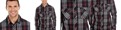 B8202 Men's Long-Sleeve Plaid Pattern Woven Shirt
