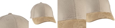100% cotton; Green camo is 65% polyester / 35% cotton; 6-panel, Low-profile; Four-row stitching on visor; 3 1/8" crown; Unstructured; Matching undervisor; Antique brass buckle closure;