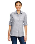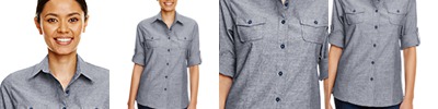 4.0 oz. 80/20 cotton/poly; 2 chest pockets, button flaps; Western half back yoke; Pearlized buttons; modern fit with roll up sleeve placket; Ladies tapered fit;